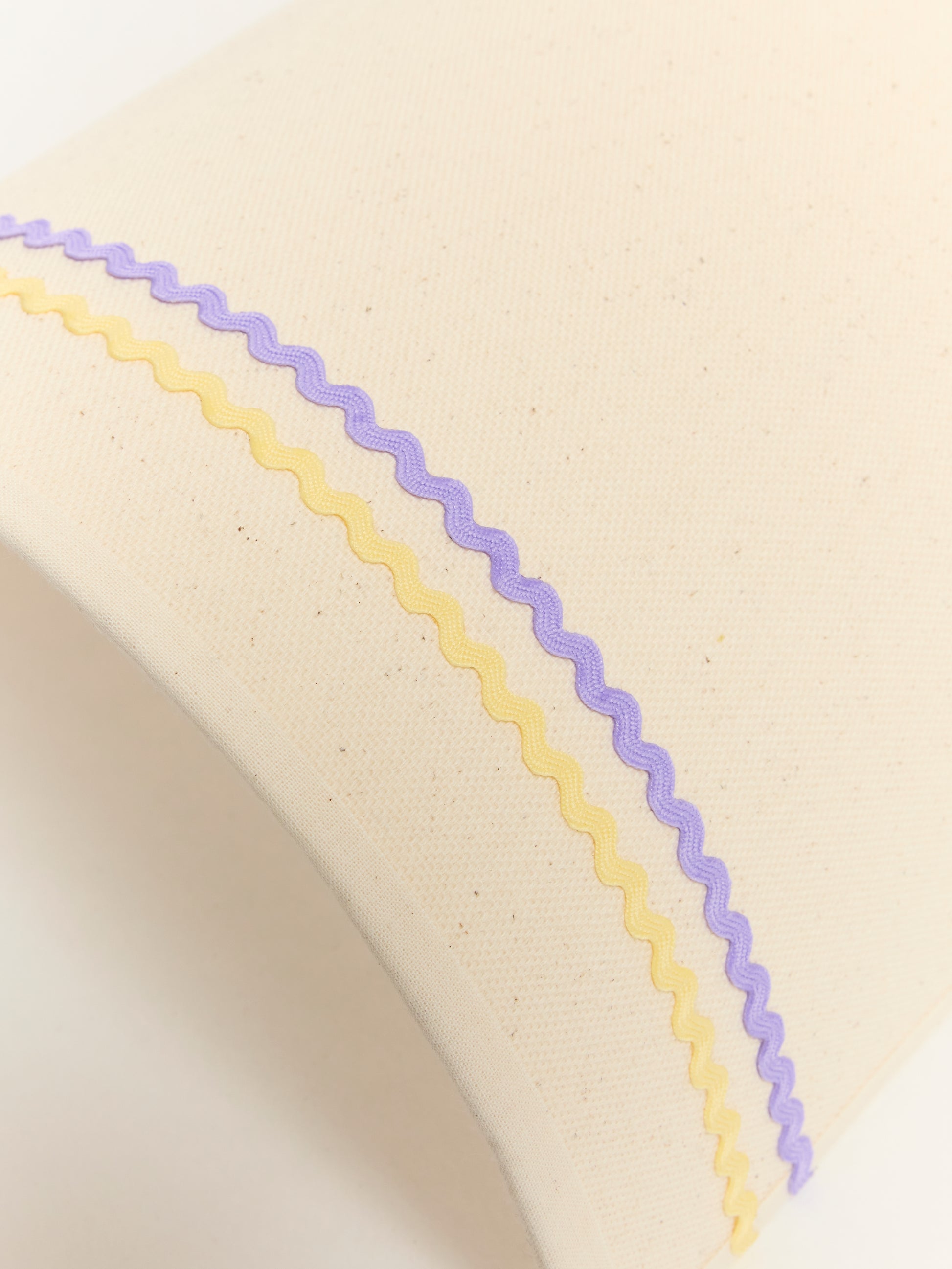 - Design : Tissu blanc cassé en base, avec deux galons de couleurs