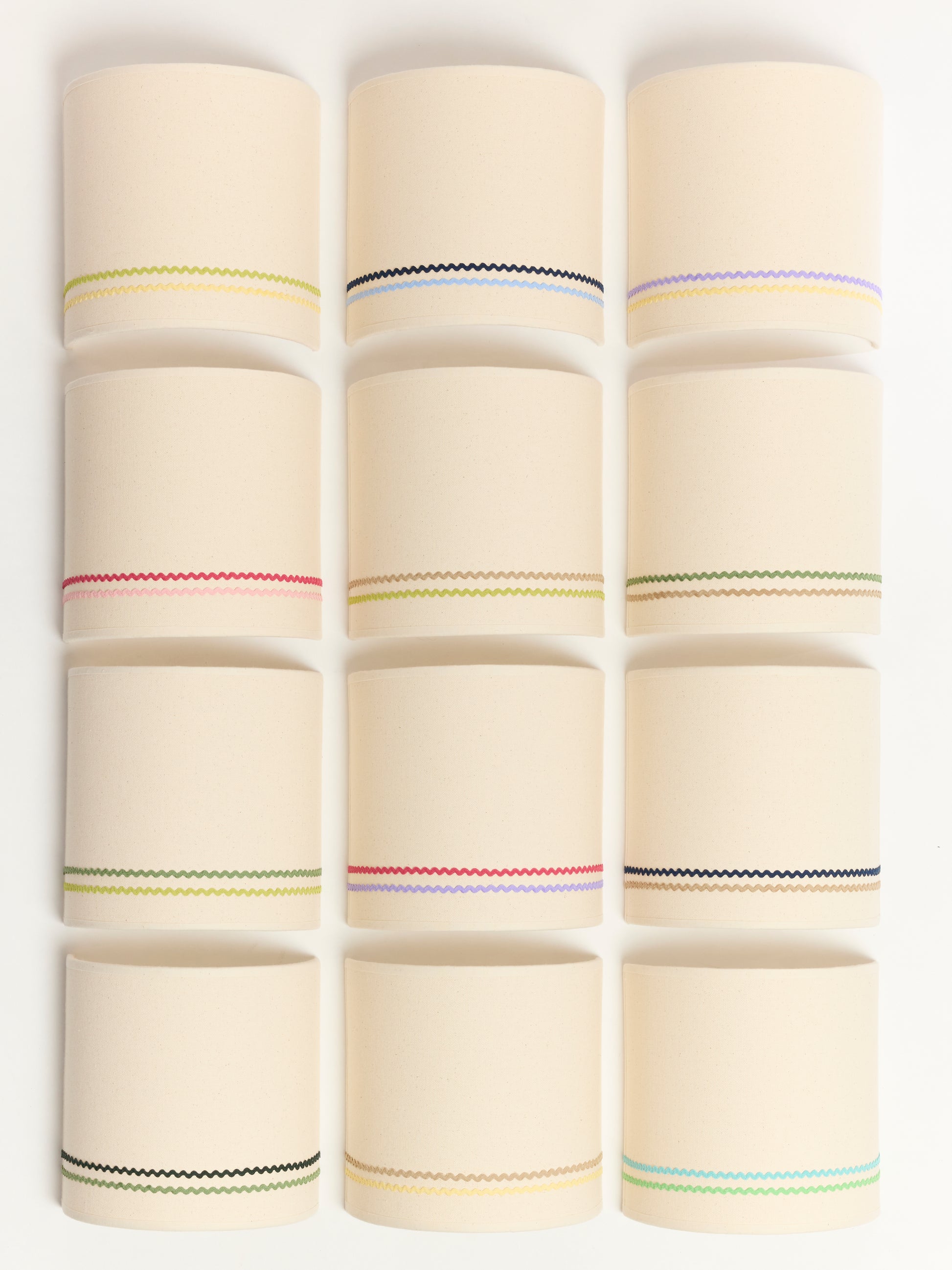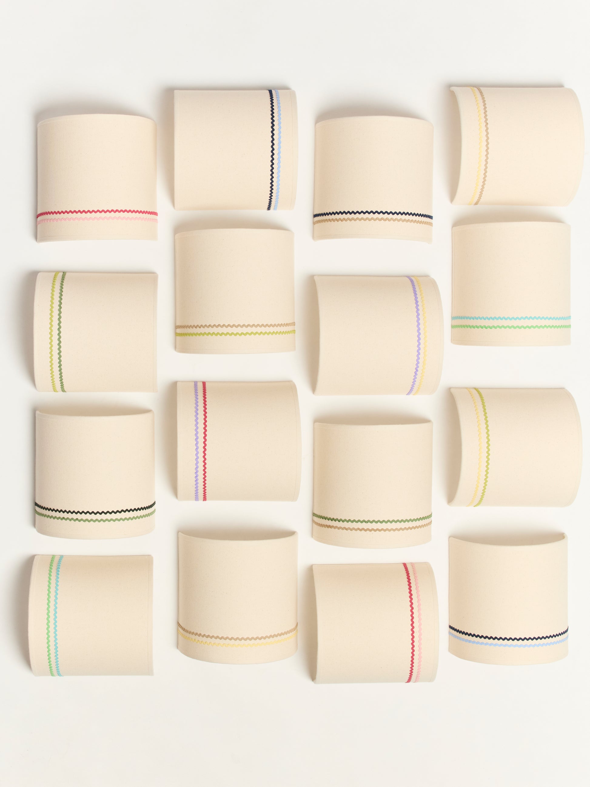 Chaque modèle se pare d’un tissu en coton couleur naturel, qui met en valeur l’éclat des galons colorés.