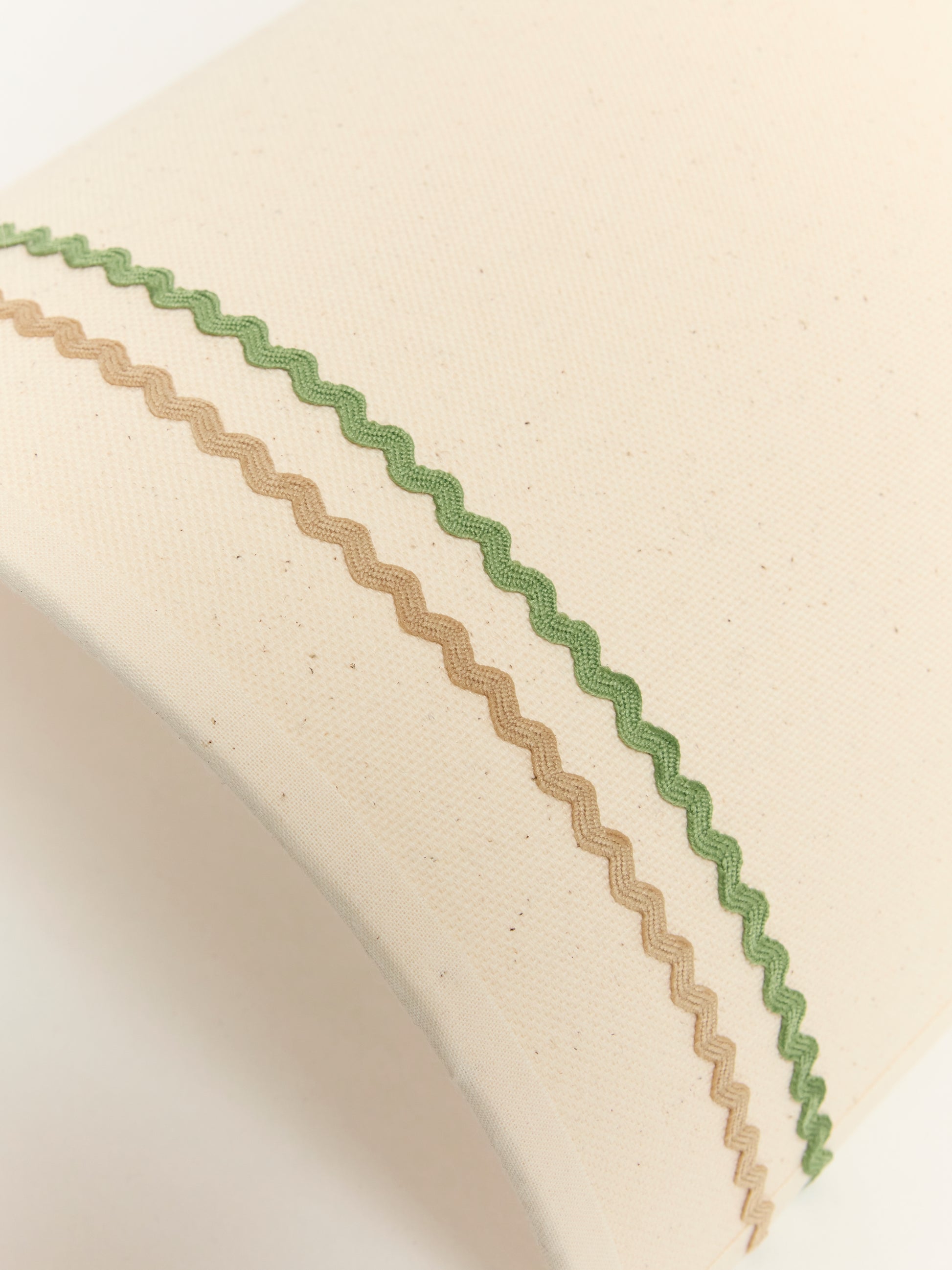 - Design : Tissu blanc cassé en base, avec deux galons de couleurs