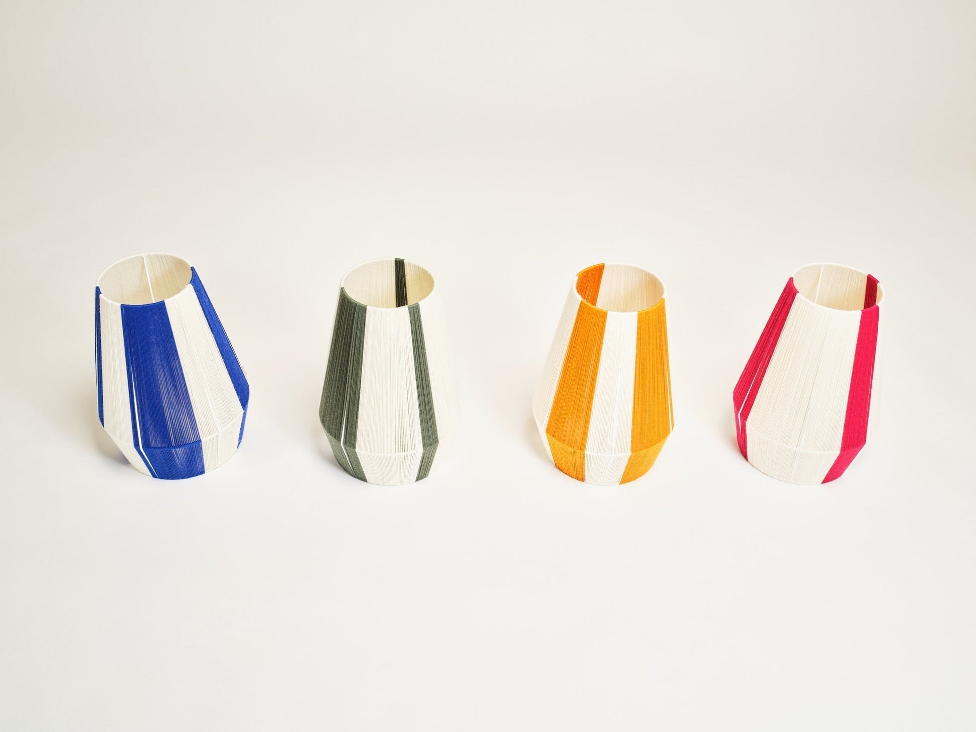 Les luminaires sont entièrement tissés main et fabriqués sur précommande. Le délai de livraison peut varier entre 3 et 6 semaines. Chaque modèle demande plusieurs heures de travail et peut présenter des variations.